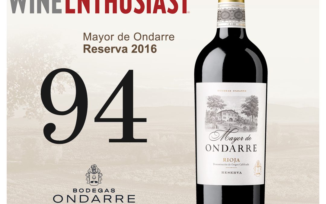 La prestigiosa revista estadounidense Wine Enthusiast ha reconocido la calidad de Mayor de Ondarre Reserva con 94 puntos.