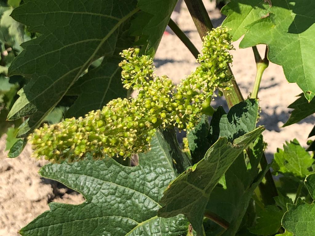 A finales de junio, encontraremos pues en las viñas racimos cargados de pequeñas bayas verdes creciendo día a día. Las hormonas de crecimiento dominan la fisiología en pámpanos y hojas, y la configuración y el engrosamiento del fruto.
