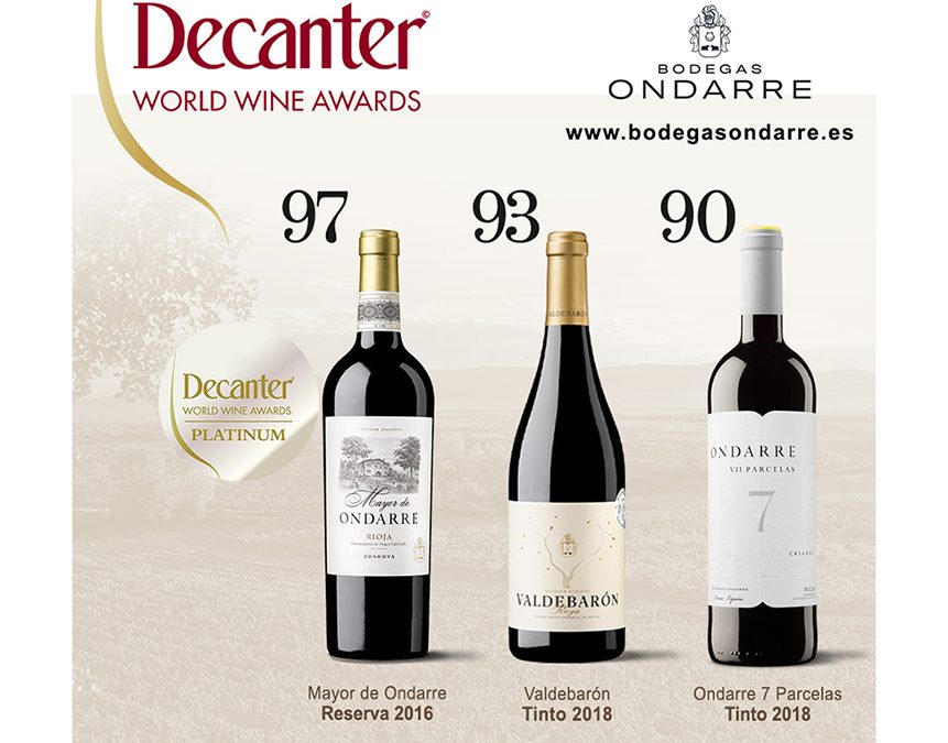 En la edición 2021 de los Premios Decanter, los vinos de Bodegas Ondarre han recibido grandes reconocimientos. Mayor de Ondarre Reserva 2016 ha sido el gran triunfador tras recibir 97 puntos, una de las mayores puntuaciones de Decanter y por ello se le ha otorgado la medalla de Platino. Este vino ya había sido elegido “El mejor Reserva de Rioja” en el concurso International Wine Challenge celebrado recientemente.